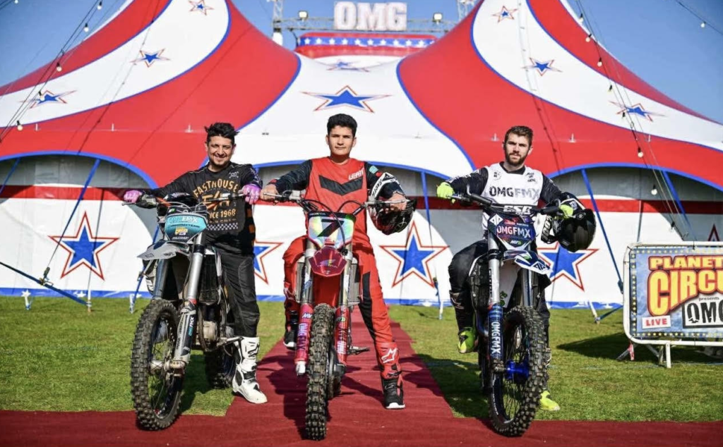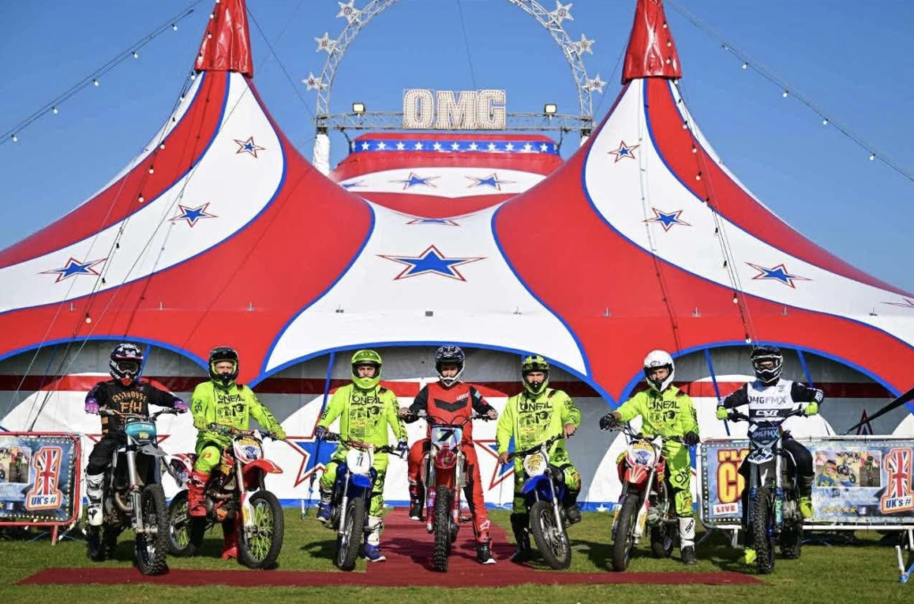 Freestyle motocross, also known as FMX, is a variation on the sport of motocross in which motorcycle riders perform gravity defying jumps, stunts and tricks. Within our circus show act we ride straight inside the big top and freestyle over the top of the audience, and the globe of speed before landing at the other side on our specially designed air bag before riding out the back and doing it again! This act really does need to be seen to be believed then you realise why we are called OMG! We can perform this stunt almost anywhere with our portable equipment and for that added OMG effect why not team it up with the Globe!